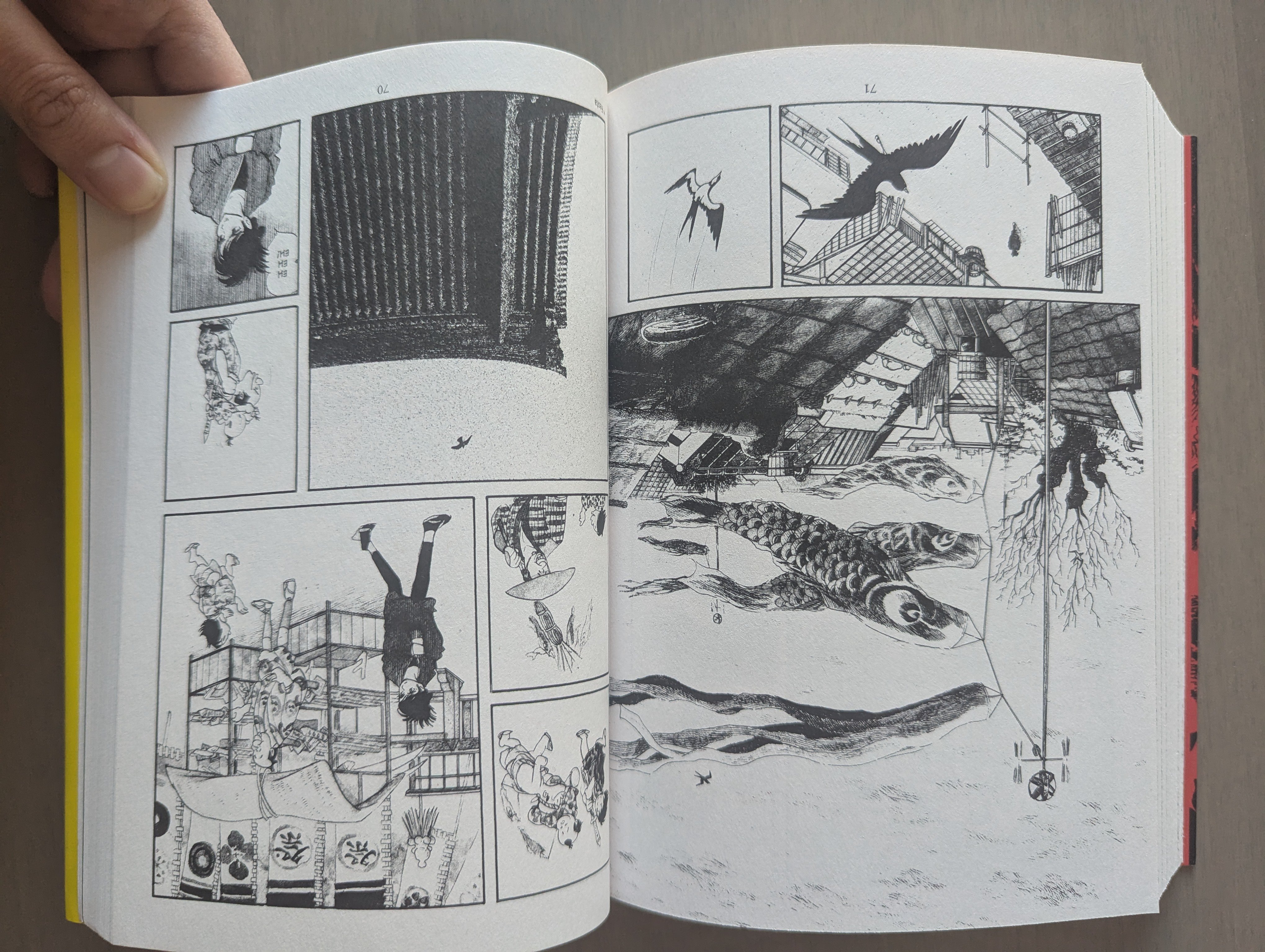 In generale, la rappresentazione del tempo è una caratteristica prominente dei manga di Ishinomori, che ha lasciato un’impronta nella storia del fumetto giapponese per il modo con cui ha adattato su carta le tecniche di montaggio del cinema. Ishinomori si ispira però anche alla poesia nell’uso di simbolismi e immagini ricorrenti che guidano l’esperienza emotiva del lettore. Entrambi questi aspetti fioriscono in Sabu e Ichi, le cui semplici scene di conversazione sono ravvivate dall’uso di inquadrature dalla composizione audace, transizioni sperimentali e metafore visive. Questi elementi, più che fare da contorno, arricchiscono le storie con delle immagini che restituiscono un senso più profondo e dinamico di quanto narrato.